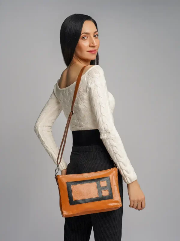 The Bloc Crossbody Bag keeps things crisp, clean, and confidently cool. With its rectangular shape and structured design, this women’s leather cross body bag adds a little edge to your everyday look—without trying too hard.