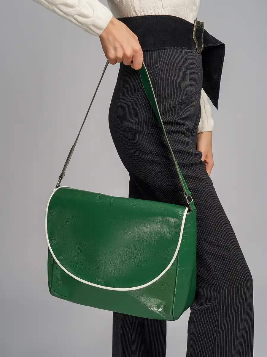 Let’s face it—Jia isn’t made for sitting pretty on a shelf. With that smooth curved flap, soft-as-butter leather, and a pop of contrast piping, this little stunner is born to turn heads.